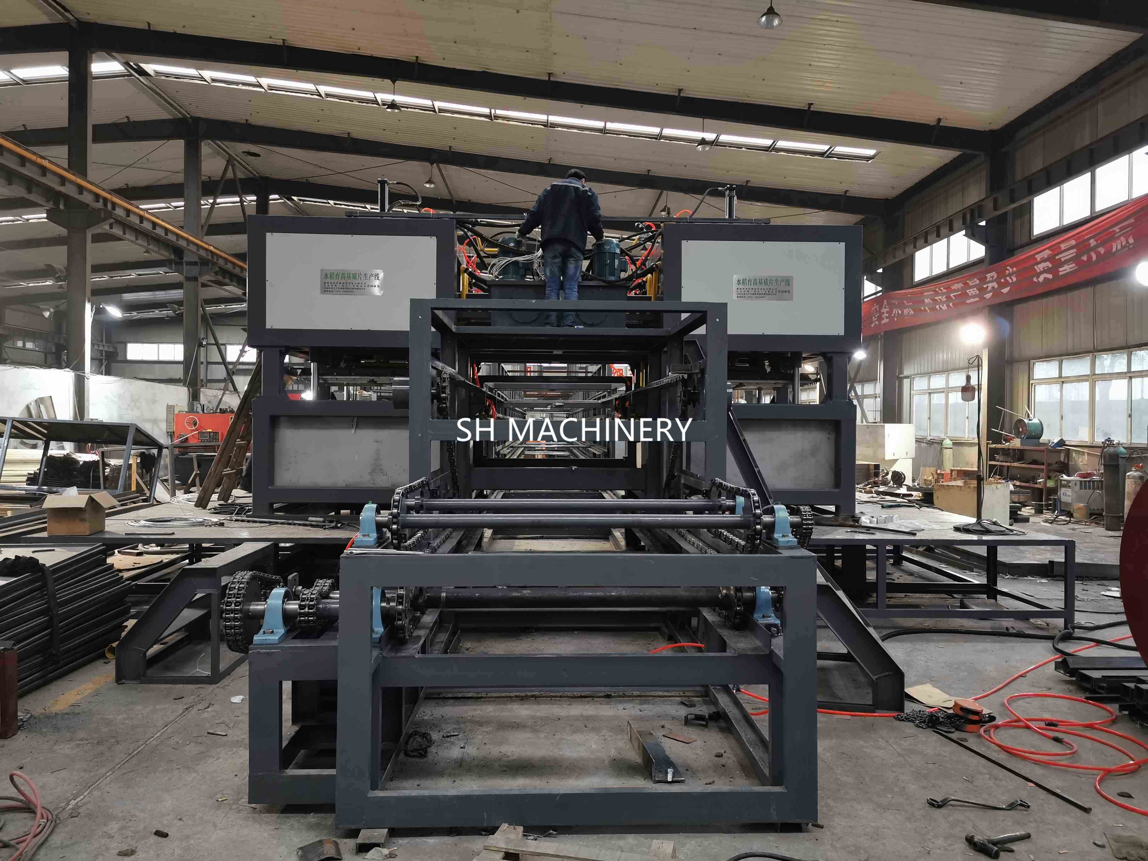 2020年年初,我司與中國(guó)農(nóng)業(yè)大學(xué)合作項(xiàng)目,生物質(zhì)環(huán)保育秧盤(pán)生產(chǎn)線,向黑龍江綏化市望奎縣客戶發(fā)貨: